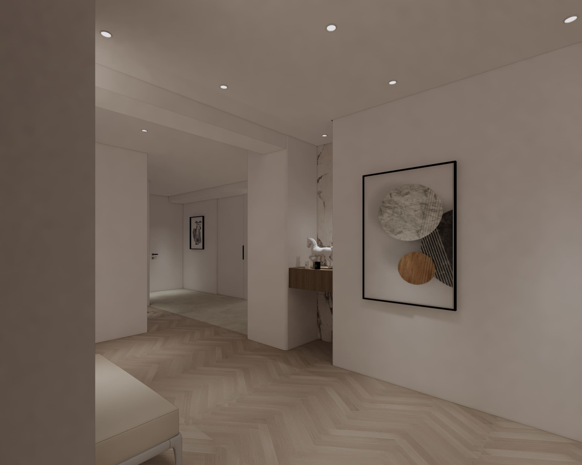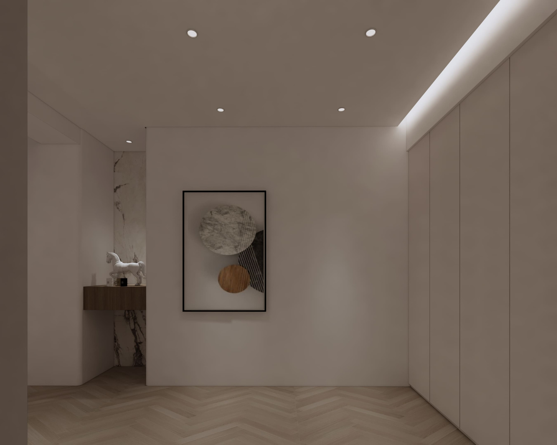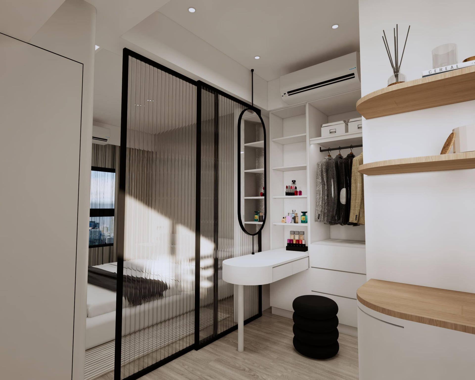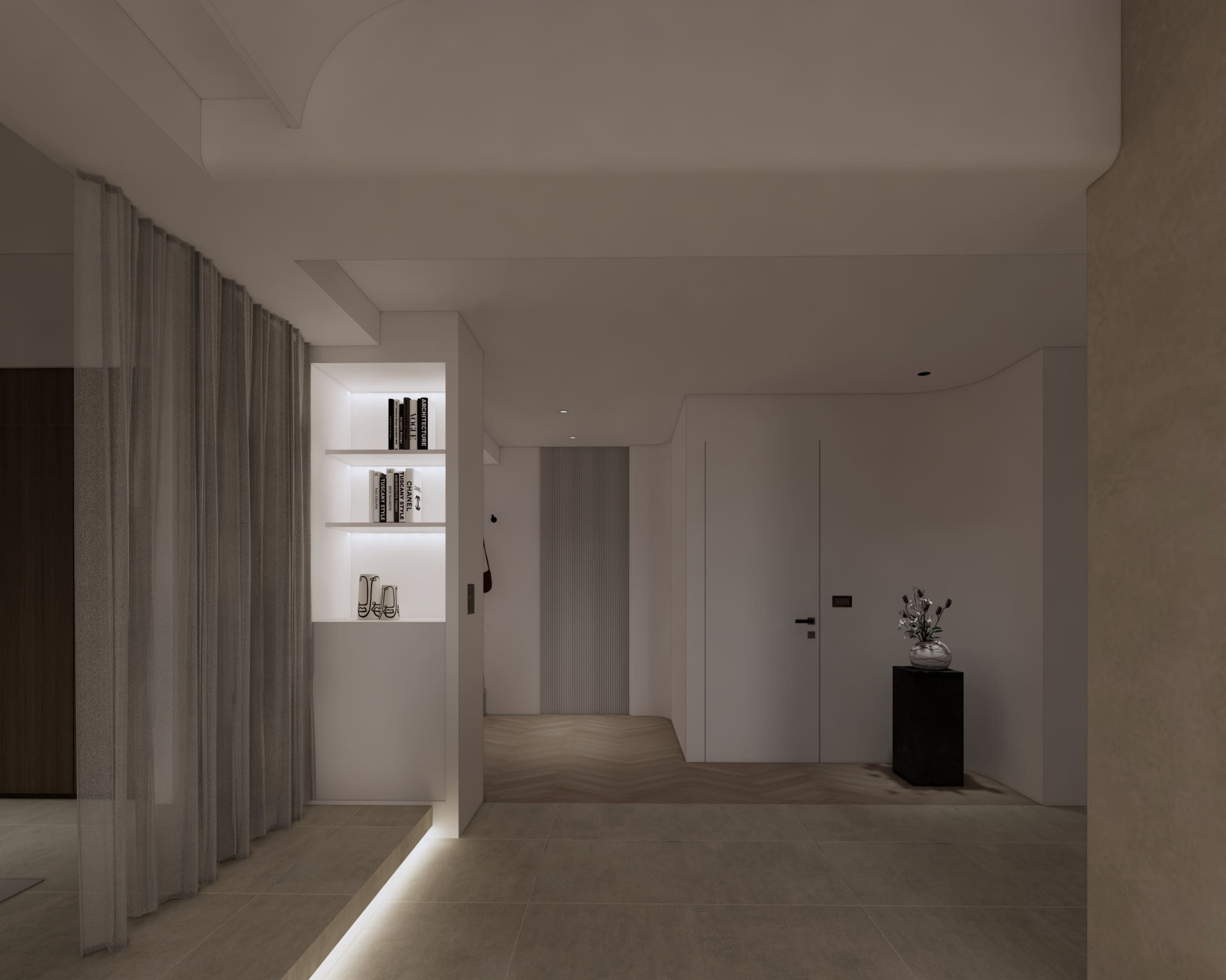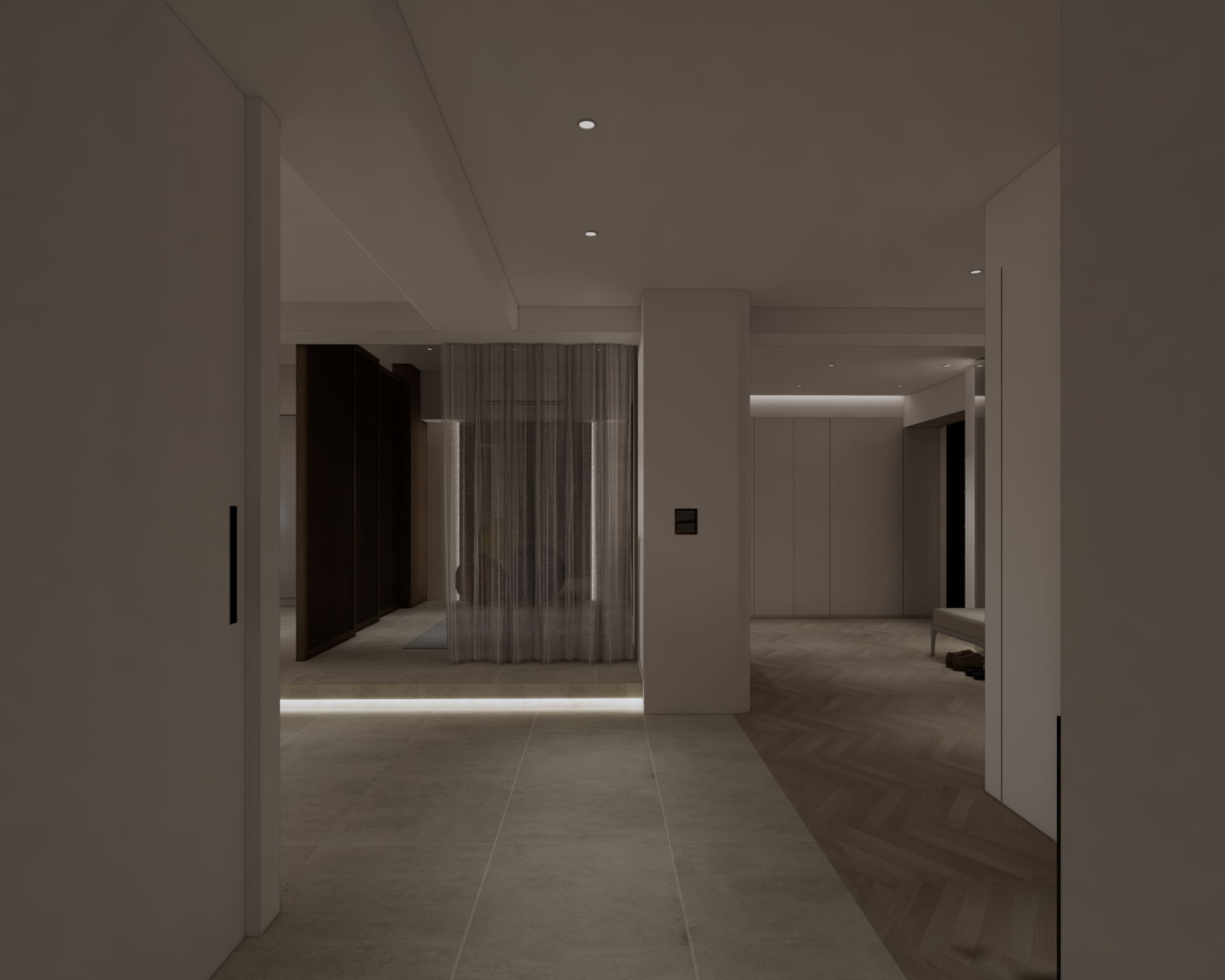 市政愛敦閣 以「溫潤與留白」為空間主軸。 透過木質格柵創造半開放式場域在客廳與餐廚之間建立視覺層次 柔和的奶油色調搭配隱藏式燈光與低飽和材質讓空間在簡約之中保有溫度與深度。 讓生活,在安靜的設計裡慢慢展開。